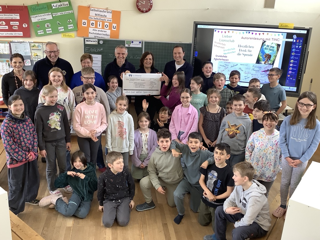 Mit einer großzügigen Spende in Höhe von 600 Euro unterstützt der Lionsclub Kleiner Odenwald die Grundschule Schwarzach sowie die beiden Nachbargrundschulen Aglasterhausen und Neunkirchen. Dank dieser Förderung können im Juni alle 85 Viertklässler an einer Autorenlesung mit dem Kinderbuchautor TINO teilnehmen, der aus seinem spannenden Buch „Die Spur des Tigers“ vorlesen wird.